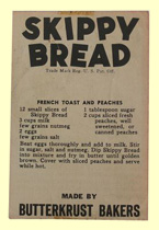 SKIPPY Bread, Trademark Reg. U.S. Pat. Ofc., Spaulding Bakeries, (C) 1936, Skippy, Inc. (Licensor)