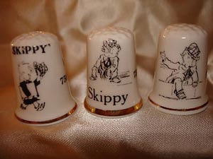 Skippy's 75th Anniversary 1923-98,limited edition bone china thimbles, (c)1998. Several are left for sale. Contact Joan, if interested.